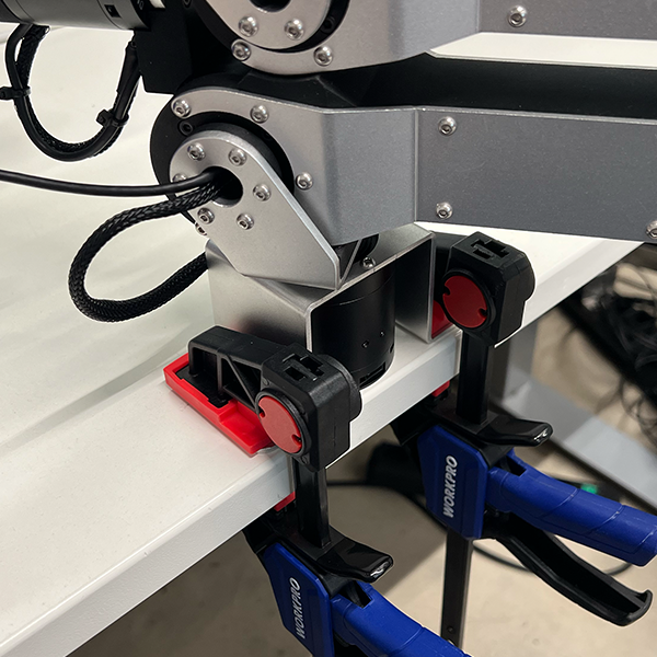 You have two options of mounting the arm; (1) with clamps or (2) 4080 aluminium extrusions:
