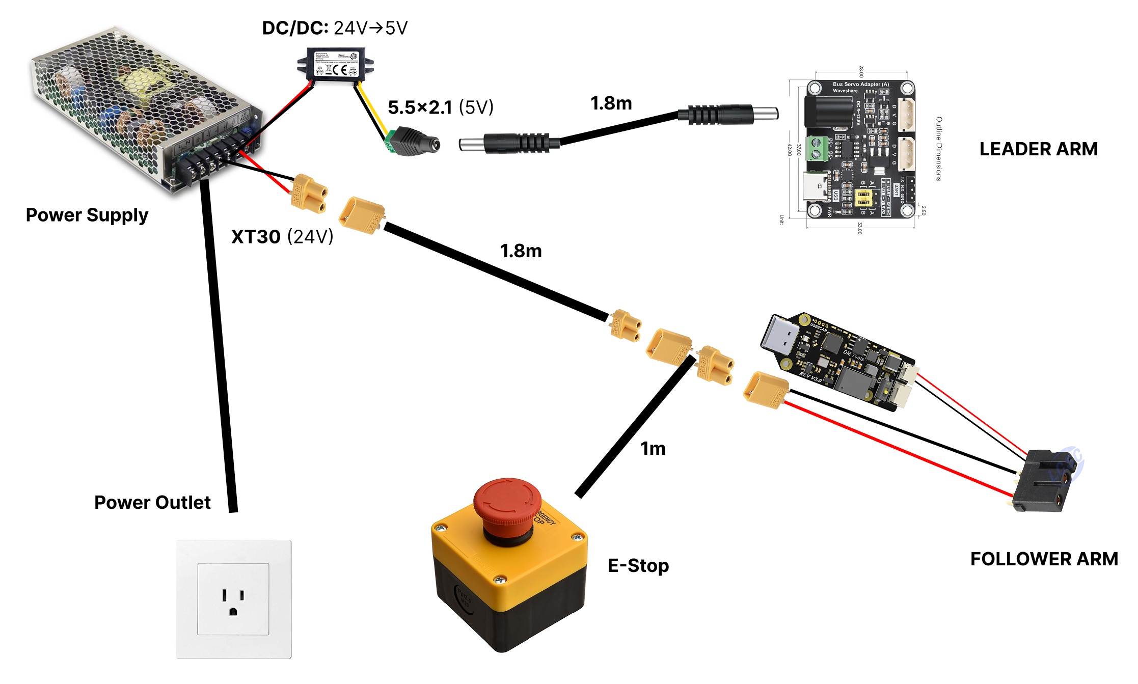 - Leader Power Cable (2m, 5.5mm x 2.1mm DC, 5V)