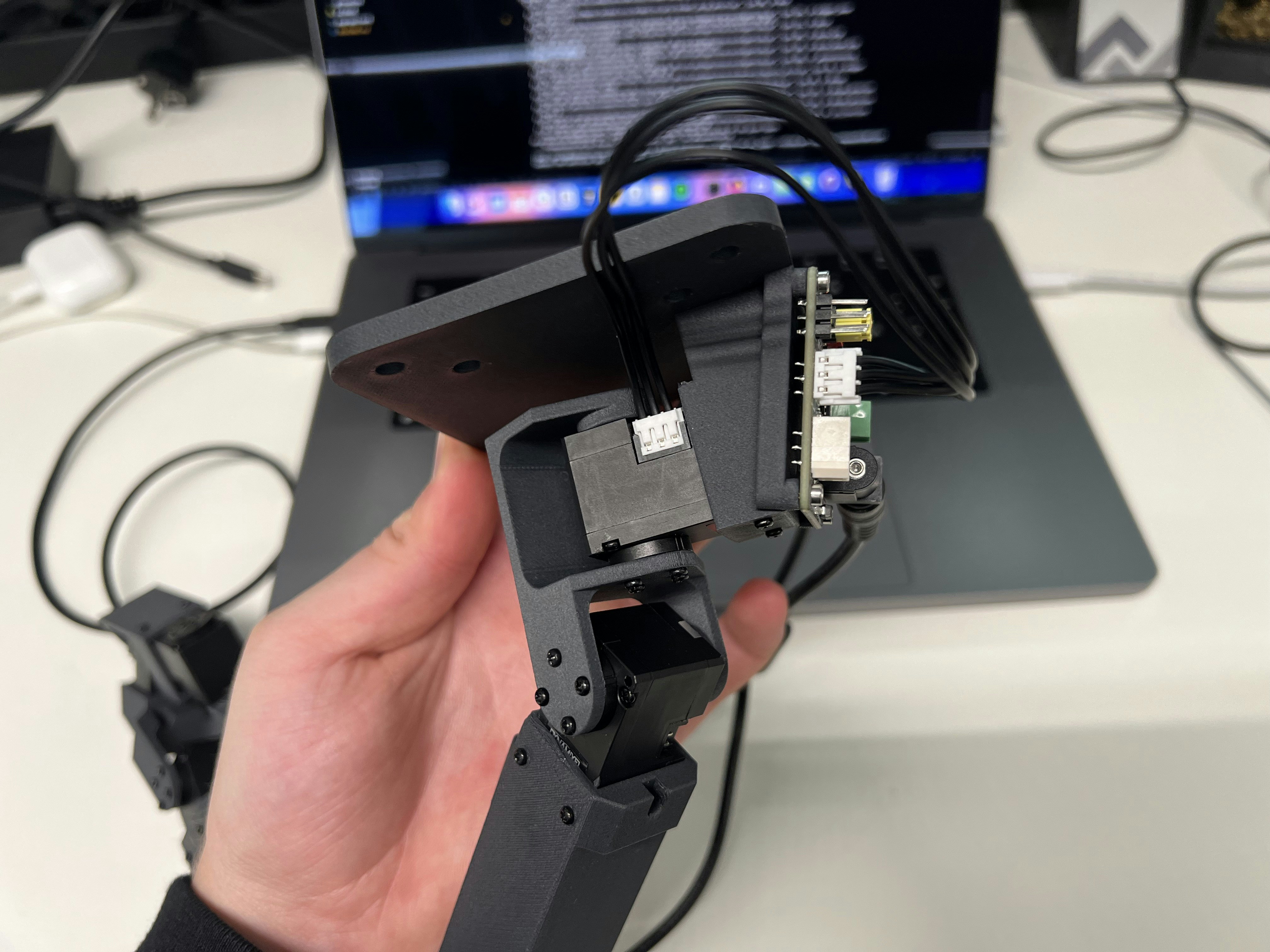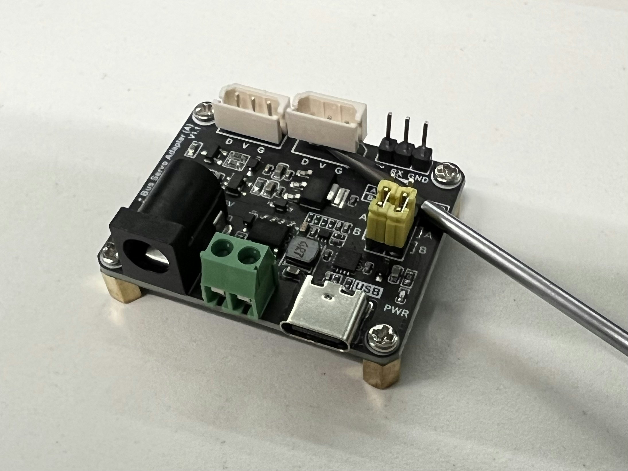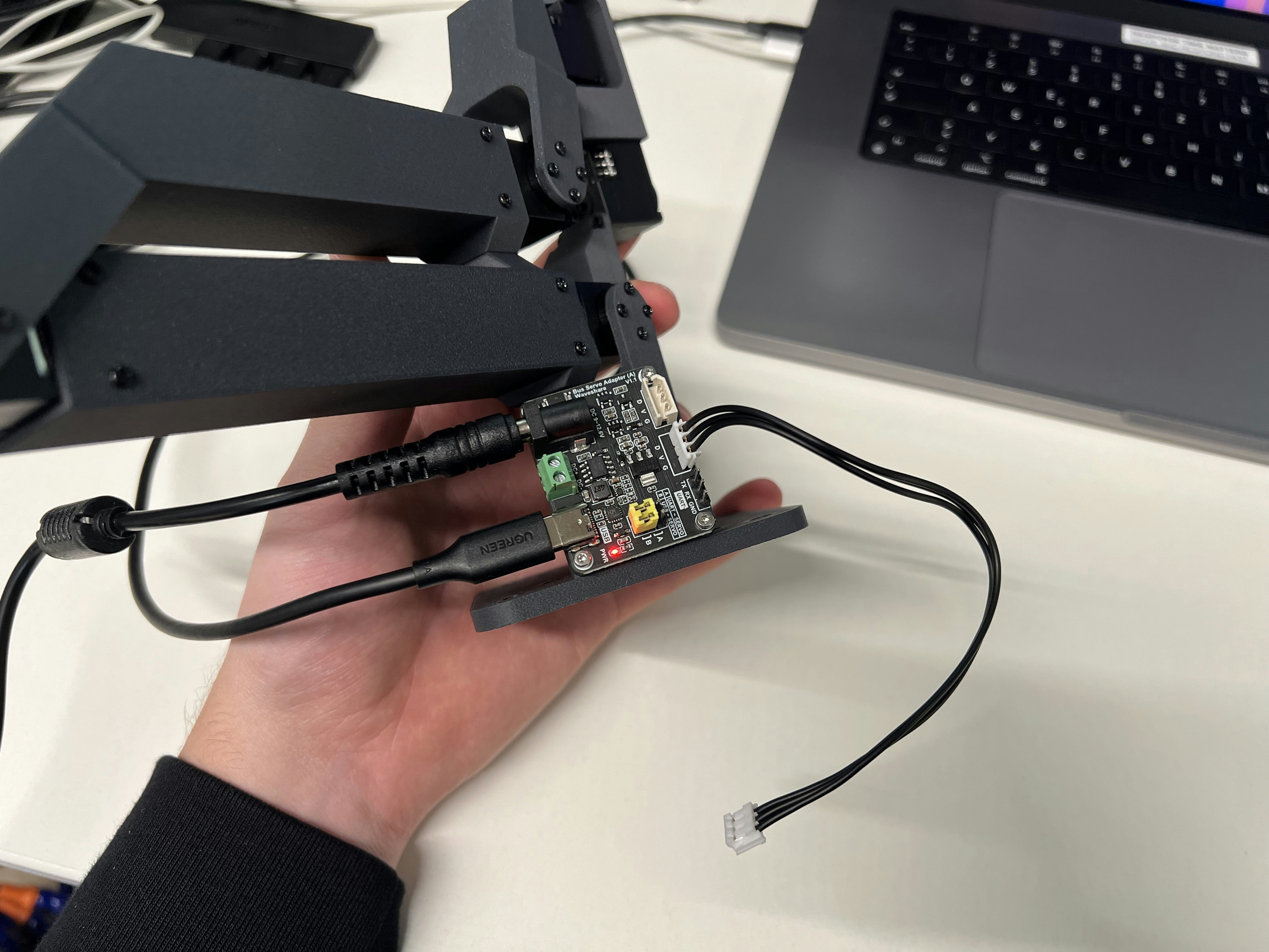 Connect the power supply, a USB-C cable, and one Dynamixel cable: