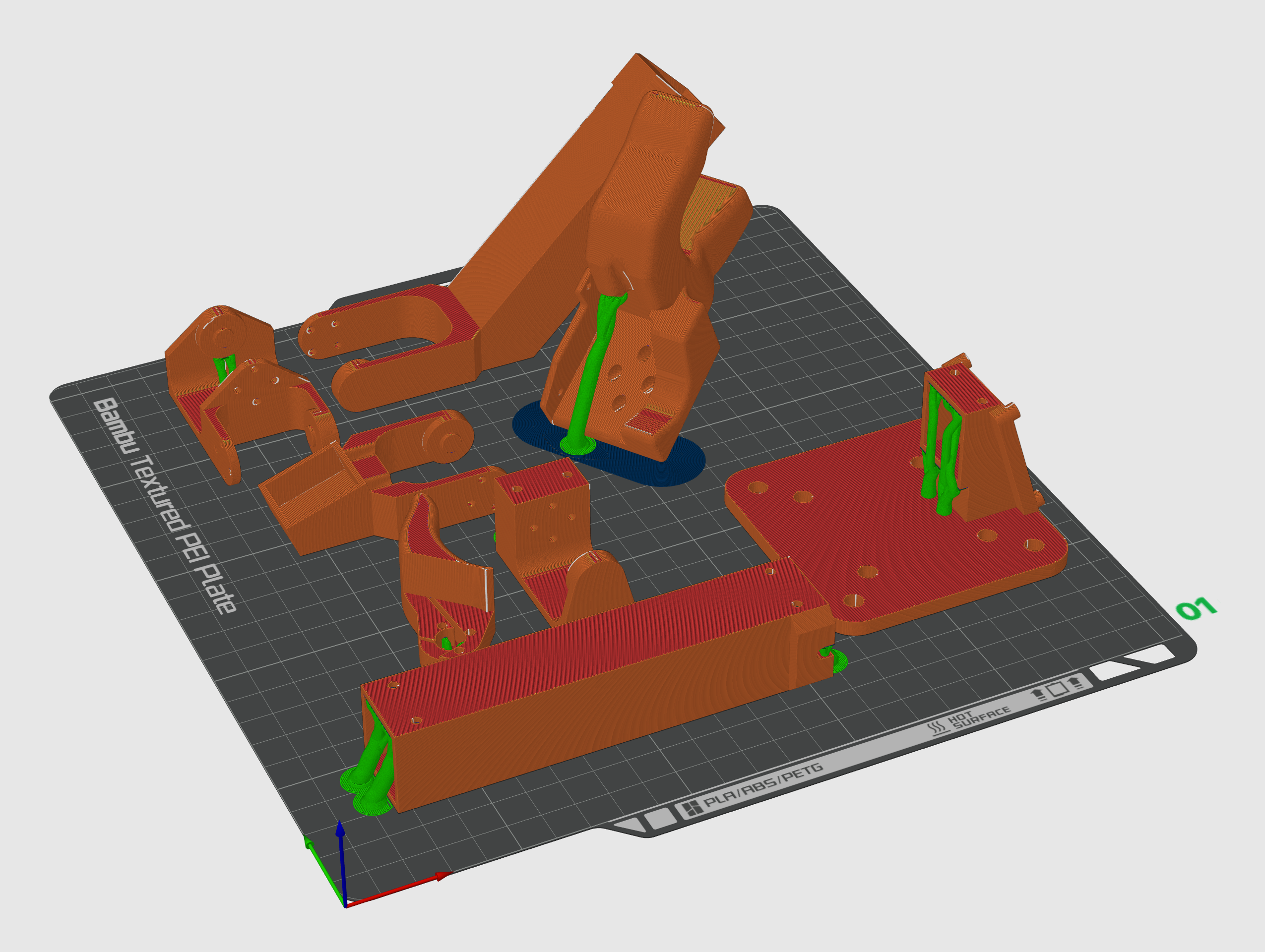 All .STL files and a Bambu Lab 3MF project file are located in the TRLC-DK1 GitHub Repo. Recommended 3D-printing orientation: